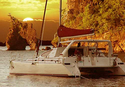 Now for the exciting part! Admiral Yachts is currently manufacturing a 50ft Adventure Boat. This new vision is a hybrid of the 50ft Executive and the 50ft Daysailor. The concept is to manufacture a 50ft boat that has a multitude of uses. The hull interiors are equipped to a high level of luxury as per the Admiral 50 Executive, sporting three double cabins and a separate heads / shower facility in each hull. Full air conditioning is standard as is the TV/DVD/CD player and plasma screen in each cabin. In contrast, we have kept the saloon / cockpit area on the same level with a three separate seating arrangements and a bar area. The idea is to keep this area as entertainment friendly as possible, with lots of easy to clean surfaces and plenty of areas to unwind. The cockpit / saloon area now has one common hard top binimi area, with the sides and the back open for excellent ventilation. In bad weather, these areas are closed off with roll-down screens. This boat has been entered into the Cape Town to Salvador race, approximately 3,400 nm, leaving Cape Town of the 4th January 2006. After completing the race, the vessel will be exploring the Amazon River, before heading towards the Caribbean. The concept of this boat is to bring international awareness to Admiral Yachts, simultaneously rending us the opportunity prove the durability and reliability of our catamarans in the harshest of environments. We